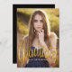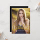 En enkel och härlig modern design som innehåller ditt student på framsidan med all party eller information på baksidan. Trendigets kursiva typografi i guld med en lekfull och kvinnlig känsla. Roligt och vackert sätt att framhäva din dotters firande i studenten.