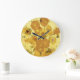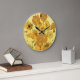 En väggklocka med den bra konstmålningen Sunblommor (1888) av Vincent Van Gogh (1853-1890). Femton blommor i vas mot en gyllene bakgrund.
