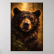 En kraftfull svartbjörn framträder i det varma skogslyset i denna djärva, strukturerade vilda natur-målning. Den närgångna kompositionen och det uttrycksfulla penseldraget skapar en slående fokuspunkt som ger styrka och naturlig skönhet till alla utrymmen. Perfekt för rustika hem, stugor och naturinspirerade interiörer.