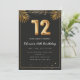 Lexury Golden Tropical Handflatan Lämnar 12:e Födelsedagsfest inbjudan. 12:e i en svart och guld-ballonger med gyllene tropiska handflatan löv. Anpassa med dina party-uppgifter och skicka ut e-post till familj och vänner och bjuda in dem att fira 12:e-födelsedagen med stil!