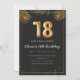 Luxury Golden Tropical Handflatan Lämnar 18:e Födelsedagsfest inbjudan. 18:e födelsedagsfest inbjudan i en svart ballonger och guld med gyllene tropiska löv i handflatan. Anpassa med dina party-uppgifter och skicka ut e-post till familj och vänner och bjuda in dem att fira 18-årsdagen med stil!