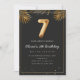 Lexury Golden Tropical Handflatan Lämnar 7:e Födelsedagsfest inbjudan. 7:e i en svart och guld-ballonger med gyllene tropiska handflatan löv. Anpassa med dina party-uppgifter och skicka ut e-post till familj och vänner och bjuda in dem att fira 7:e-födelsedagen med stil!
