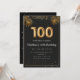 Adorable 100th birthday party invitation in a black and gold balloons design with golden tropical palm leaves. Customize with your party details and mail out to family and friends inviting them to celebrate the 100th birthday with style!