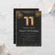 Adorable 11th birthday party invitation in a black and gold balloons design with golden tropical palm leaves. Customize with your party details and mail out to family and friends inviting them to celebrate the 11th birthday with style!
