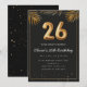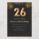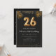 Adorable 26th birthday party invitation in a black and gold balloons design with golden tropical palm leaves. Customize with your party details and mail out to family and friends inviting them to celebrate the 26th birthday with style!