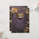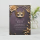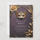 Upplev en kväll av fantasi och elegans med den här Masquerauppbjudan till Boll. I den här designen visas en bakgrund för lila av rik som är försedd med faux golden dekoration, 3D-blad och en kaptiverande maskerad.