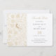 Den här Save the Date-inbjudan är en poetisk blandning av viktoriansk charm och romantisk symbolik, med guldfärgat love birds som en representation av parets union. Den lyxiga guld- och elfenbensformgivningen ställs in mot en delikat gräddbakgrund och förstärker den Victorianska blommigtens motiv som vävar genom biet som en tidlös bandindustri. Bilden är rik med ornerade detaljer, inklusive stiliserade blommor och vindruvor för elegant, där fåglarna med initialer symboliserar parets namn. Det är ett oklanderligt val att tillkännage ett bröllop som kommer att vara lika spännande och klassiskt som själva designen.