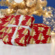 Julgyllene och vita Julgranar på mousserande röd bakgrund