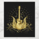 Fantasy stil golden guitar med vingar, rullningsdetaljer och musik noter.