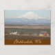 Resevykort med fotobild av en scenisk, lantlig, jordbruksdal sitta under majestätisk, täckte snö Adams i Goldendale i Washington. Välj från projektionsyta eller glansig stil.