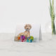 A perky Goldendoodle lies surrounded by birthday presents. Who are they for? The Goldendoodle or you!