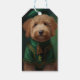 Goldendoodle Hund i St. Patrick Dress Presentetikett