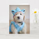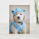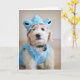 Goldendoodle-valpen i ljusblå hajdräkt.