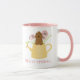 Tecknad illustration av en Goldendoodle som poppar ut ur en vattenskål fylld med blommor. Perfekt för sommar och vår!