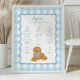 Celebrate your little one’s first year with this adorable “My Golden Year” milestone poster! Featuring a classic blue gingham background, a cute golden doodle puppy with a matching bow, and elegant personalized text, this boy’s first birthday milestone sign is the perfect keepsake to capture your baby’s favorite things, milestones, and memories.