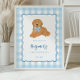 Welcome your guests in the sweetest way with this blue gingham golden doodle first birthday poster! Featuring a darling golden doodle puppy with a blue gingham bow and a classic checkered background, this personalized birthday poster adds a heartwarming touch to your little one’s special day.