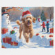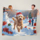 Goldendoodle Runin i Snö med julklapp Fleecefilt