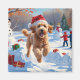 Goldendoodle Runin i Snö med julklapp Magnet