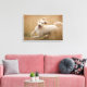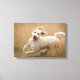 Goldendoodle, tunga ut, öron flopping, springa genom högt gräs.