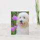 Goldendoodle i azalea-trädgården för ett allmänt tack.