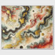 Ein abstraktes Gemälde mit goldenen Flüssen, die sich durch die Farben Weiß, Rot, Blau und Schwarz schlängeln. Die dynamischen Muster entstehen durch die Technik des Fluid Paintings.