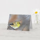 En goldfink sitta vid gren under snö flurries.