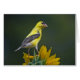 Det här färgkortet innehåller ett foto av en gult fink som genomsyras av en jättelik solros.