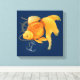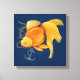 Canvas med fantastiska guldfisk, roder och sjömansillustration på marinblå bakgrund.