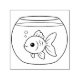 Black and white illustration of a goldfish swimming in a fishbowl empty of decorations.