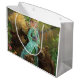 Goldilocks och "Three Bears Art Shopping bag" har en ung kvinna i en färgad klädd med flytande gyllene klår som står mellan Pappa Bear, Mamma Bear och Baby Bear och som håller en skål av gröt i lila. Djup grönt skogen fyller bakgrunden och blommorna och ett välkommet format dekorerar förgrunden. Denna vismliknande sagart som digitalt målas upp av vår prisbelönta bok-konstnär, Traci Van Wagoner, ger en perfekt till alla som kärlekar sagor, björnar, Goldilocks och vismisk sagekonst. In i Goldilocks zon idag!
