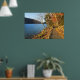 Det här är en lågupplöst bild för webben, den utskrift du får har vassa detaljer. Anpassa din storleka! Höstgolder och uppfriskande blues. Detta naturspår går runt Jordan Pond i Acadias nationalpark. Fotografi av Minerva Bloom.