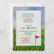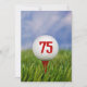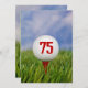 Vit golf boll på rött i grönt gräs för 75:e party All text är redigerbar.