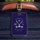 An elegant and monogrammed idea for a golf-player... personalized with his name and initials... on navy blue background... to easily identify your bags and travel in style.