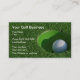 Modern golftema affärskort designmall skapad med en bild av en golfboll i hålet på gräsmattan. Skapad för golftränare, golfbana, klubb eller golfbutik. Presenteras i en professionell look.
