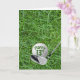 Golf boll på grönt gräs med golf klubb i 13 år.
