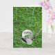 Golf boll på grönt gräs med golf klubb i 45 år.