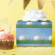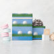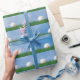 vit golf boll i grönt gräs med blå himmel-bakgrund