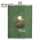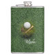 Golf boll på grönt gräs fickplunta