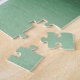En vit golf boll på en vit T framför gröntens bakgrund.