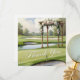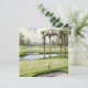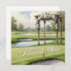Visa din uppskattning med eleganten Golf Bröllop tackkort. Kortet har en serengolfbana och innehåller en grönt, sandbunker och vatten , med en bröllop-trähamn som är försedd med vackra blommigtar. "Tack" i ord är delikataktigt framskridet i kursiv stil, som om det vore klippt från gräset och tillför en personlig och unik beröring. Detta kort för vattenfärg-stil fångar skönheten och lugnet hos en golfbana bröllop, perfekt för att ha uttryckt sin tacksamhet till gästerna.