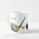 Create a personalized mug for your favorite golfer. This coffee mug features my realistic style illustration of a golf club and golf ball in shades of blue and gold. It's ready to be personalized with a name, initials or other custom text in matching navy blue lettering. The text and graphic appear on both sides of this mug.