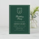 Celebrate a milestone with understated luxury and golf-inspired charm. This elegant 50th birthday design features a refined crest with crossed clubs and flag detail, paired with flowing script typography for a timeless yet modern look. The deep green background evokes classic fairway tones, while light ivory accents elevate the design with a clean, polished finish. Ideal for country club gatherings, golf enthusiasts, or sophisticated outdoor celebrations, this layout balances minimalism with meaningful detail. Easily personalize with name, date, and event location. Designed for those who appreciate style, simplicity, and a nod to the game they love.