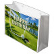 Fira i solig golfstil med denna Golf Florida-tema stora presentpåse för födelsedagar. Med en fräsch putting green och en golfboll nära hålet fångar designen den ljusa och avspända känslan av Floridas golfbanor. Ren, modern och elegant, perfekt för att förpacka presenter till golfare och ge en country club-känsla till alla födelsedagsfiranden.