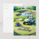 Golf födelsedag med golfbil för golfare vykort