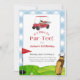 Denna golf-födelsedagsinbjudan är perfekt för alla barn eller vuxna som älskar golf! Den kommer definitivt att få alla i födelsedagsstämning. Och med dess lättanpassade funktioner kan du vara säker på att din golf-födelsedagsinbjudan är precis lika speciell som ditt barns stora dag. Dina barn kommer att älska spänningen inför denna golf-födelsedag med denna unika inbjudan golf par-tee-design. Denna golf-födelsedagsinbjudan med akvarell-grafik är perfekt för alla country club-födelsedagsfester eller golf-tema-fester! Det här gör också en bra pensionsfestinbjudan eller sillar-fest.