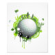 Modern illustration med golf som tema. En golf boll representerar jorden med golferer och flaggor runt den i tonerna av grönt. Roligt och modern utformning för golfplattan älskare.