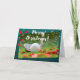 Golf järn och boll är på grönt julkort med grafisk dekoration