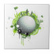 Modern illustration med golf som tema. En golf boll representerar jorden med golferer och flaggor runt den i tonerna av grönt. Roligt och modern utformning för golfplattan älskare.