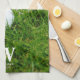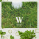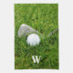 Anpassningsbar golfkökshandduk med golfplatta klubb och boll på grönt gräs. Använda fälten online för att anpassa med ett namn och ett monogram.