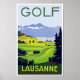 Vintage resor poster att man främjar Lausanne Schweiz som Golfingdestination.